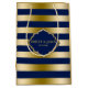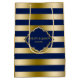 Monogrammed Gold & Blue Stripes Pattern Medium Gift Bag