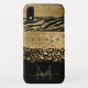 Girly modern animal print - both zebra and leopard - in brush strokes with gold, glitter, black and adorned with your script monogram, first name and initial.