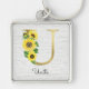 Monogram gold lettering with sunflowers initial keychain, perfect gift for Christmas, birthday, or other celebration for a daughter, sister, aunt, mother, or friend. Customised with monogrammed the gold letter U and a name on a birch wood background. Other letters available in my shop.