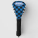 Custom Monogram on golf club head cover. Your choice of font and colour. Set on a blue "buffalo" plaid background. Great gift for Father's Day or for any golfer who loves the game.