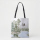 Monogrammed Green Pine Forest and Lake Tote Bag