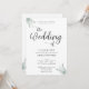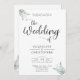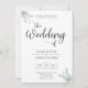 The chic wedding invitation design features a bouquet of watercolor eucalyptus greenery and an elegant sophisticated set of fonts.