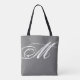 A stylish grey tote bag with your name and initials monogrammed in a script font style