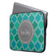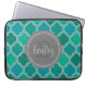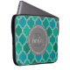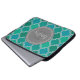 Monogrammed Grey Teal Modern Lattice Pattern Laptop Sleeve