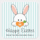Our adorable custom Happy Easter Bunny seals and stickers with a cute bunny rabbit holding a heart shaped carrot between its paws on a blue and white striped background can be personalised with your family name, greeting and monogram. Artwork © Chrissy H. Studios, LLC. All Rights Reserved.