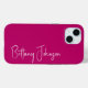 This monogrammed hot pink iphone 15 case is trendy yet and classic. It features your name in a fabulous modern script font in white. It's simple and minimal and professional.