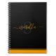 Simple modern script personalised notebook for your journalling. The elegant orange stylish script on black matches the line design in colour but offsets it in style, creating a fun twist to the minimalist look.