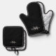 Monogrammed Initial Name Black Oven Mitt & Pot Holder Set