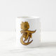 Elegant monogram letter T gold satin with a delicate peony flower coffee or tea mug. Great gift idea. This image is available on many products in my gallery.