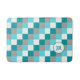 Monogrammed Initials on Teal and Aqua Checked Bath Mat