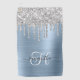 Monogrammed Light Blue and Silver Dripping Glitter Golf Towel