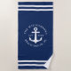 Monogrammed Light Navy Blue White Anchor Nautical Beach Towel