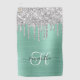 Monogrammed Light Teal Silver Dripping Glitter Golf Towel