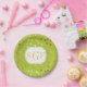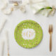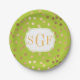 Monogrammed Lime Green and Gold Glitter Dots Paper Plate