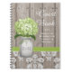 Pretty rustic style monogrammed mason jar binder with a green hydrangea flower and a wooden fence and antique damask pattern lace background and stitched green ribbon. This wedding or bridal shower or couples shower guest book and words of advice book can be personalised with the initials and monogram of the bride and groom on the mason jar and customised with the names of the happy couple. Perfect for a country, farmhouse, garden party or barnyard style wedding or shower. Designed by Chrissy H. Studios, LLC. All rights reserved.