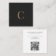 Monogrammed Minimal Celestial Stars Black QR Code Square Business Card