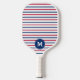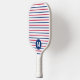 Monogrammed Minimalist Red and Blue Stripes Modern Pickleball Paddle