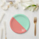 Monogrammed Mint and Coral Colour Block Paper Plate