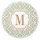 Add your monogram or initial to the bracket shaped centre design on a mint green and gold quatrefoil pattern. This exotic and elegant Moroccan style inspired pattern in pale green jade, white and goldish brown is perfect for the woman with a preppy, stylish and modern style. Artwork © Chrissy H. Studios, LLC. All rights reserved.
