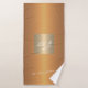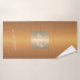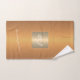 Trendy luxury exclusive looking monogrammed bath towel set featuring a faux gold square over a stylish classy orange terracotta metallic background. + Personalise it with your white script signature name or family name and monogram name initials.