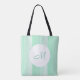 Monogrammed Modern Mint Green Striped Template Tote Bag