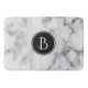 Monogrammed Modern White & Grey Marble Stone Bath Mat