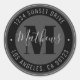Monogrammed Name & Circular Text | Grey & Black Classic Round Sticker