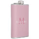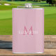 Bold, modern, and unmistakably feminine, this pink flask features a deep pink initial and crisp white serif name for high-contrast personalization. The luminous field adds a polished pop of color, while the clean layout keeps the focus on your custom details. Designed for women who favor minimalist style with a personal touch, it’s a standout accent for bridesmaid kits, tournament gifts, or club collections. Fully customizable and gift-ready, this flask brings cohesion and clarity to any suite.