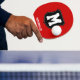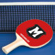 Personalised name or monogram ping pong paddle for table tennis Sports game gift idea for men women and kids. Monogrammed letter initial design with shield emblem. Custom background colour. Fun for player and school team coach. Personalizable ollege dorm accessories.