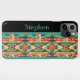Bright and colourful Native American Aztec design phone case in shades of turquoise blue, terracotta, adobe tan and black accents. Personalise with your name on the left side in turquoise blue. Great gift for Father's Day, Christmas or for anyone who loves Native American and Southwestern design.