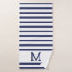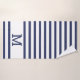 Modern navy blue and white striped towel set personalised with your monogram initial.