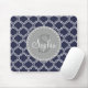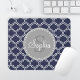 Monogrammed Navy Blue Lattice Pattern Mouse Mat