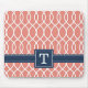 Monogrammed Navy Blue Pink Lattice Pattern Mouse Mat