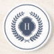 Customise it with your own initial. Navy blue and white wreath crest with customisable monogram.