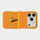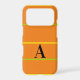 Modern design with a simple feel. Cool orange background with geometric striped lines alternating in bright yellow and citrus green. Fun summer pattern. Personalise Monogram initial in black text. Original designs by TamiraZDesigns.