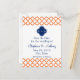 Monogrammed Orange , Royal Blue Quatrefoil Announcement Postcard