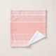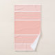 It's a classic. Colour blocking in various shades of peach with white dividers and monogram at base of towel. Available in a variety of shades.