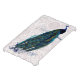A colourful peacock on a soft pink damask background. Personalise with your monogram or delete the letter field.