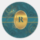 Monogrammed Peacock Teal with Gold Round Classic Round Sticker