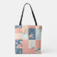 Monogrammed Pink and Blue Patchwork Pattern Tote Bag