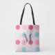 Monogrammed Pink and Blue Polka Dot Tote Bag