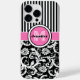 Monogrammed modern pink, black, and white stripes with damask iPhone 14 Pro Max Case.