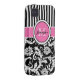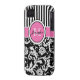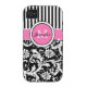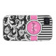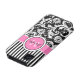 Monogrammed modern pink, black, and white stripes with damask Case-Mate Vibe™ iPhone 4 Case.