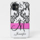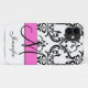 Monogrammed Pink Black White Swirls Damask Case-Mate iPhone Case