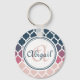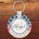 Monogrammed Pink Blue Moroccan Lattice Pattern Key Ring