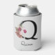 Monogrammed Pink Boho Floral Initial Q Can Cooler