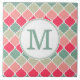 Monogrammed Pink Green Moroccan Lattice Pattern Tile