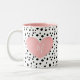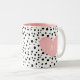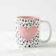 Have your morning coffee in your signature mug with a pink heart and black dots.