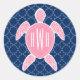Monogrammed Pink Sea Turtle Blue Quatrefoil Classic Round Sticker