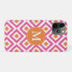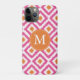 Monogrammed Pink Tangerine Diamond Ikat Pattern Case-Mate iPhone Case